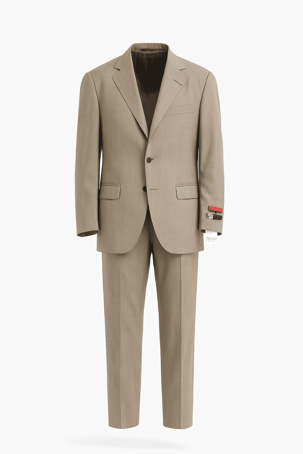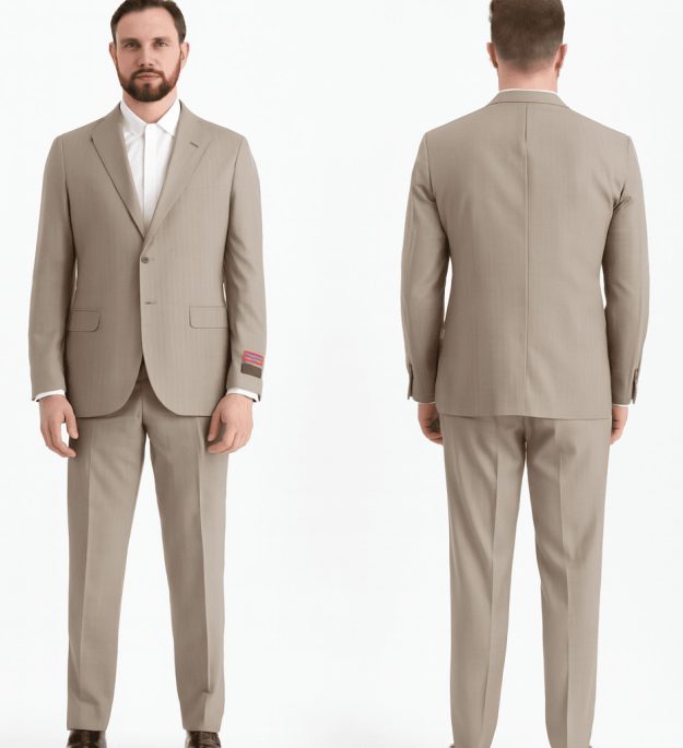 بدلة رسمية أنيقة باللون البيج، مناسبة للمناسبات الرسمية والاجتماعات الهامة. تتميز بتصميم عصري مع تفاصيل دقيقة تضفي على المظهر أناقة وفخامة. الجاكيت مزود بياقة أنيقة وأزرار مزدوجة، بينما السروال بقصة مستقيمة. البدلة أيضًا مزودة بشريط مميز على الأكمام يضيف لمسة من التفرد.
