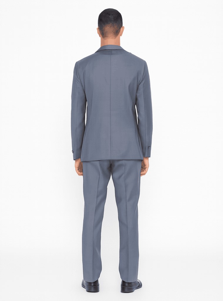 بدلة رسمية أنيقة باللون الرمادي الغامق، مصممة للمناسبات الرسمية والاجتماعات الهامة. تتميز هذه البدلة بتصميم عصري مع تفاصيل دقيقة تعكس الفخامة. الجاكيت مزود بياقة أنيقة وأزرار مزدوجة، بينما السروال بقصة مستقيمة توفر إطلالة مميزة وأنيقة.