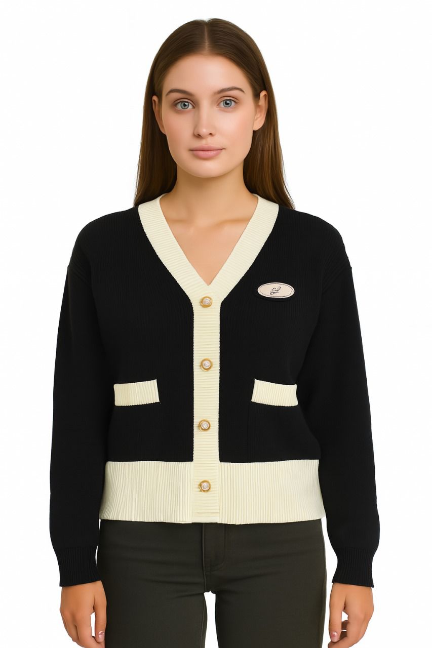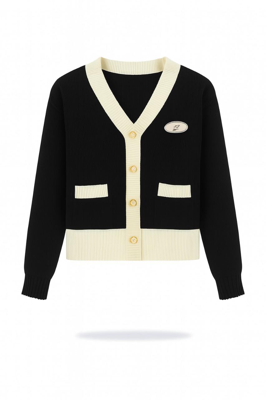 اللون: أسود مع تفاصيل باللون البيجالخامة: نسيج مريح متوسط السماكةالإغلاق: أزرار أماميةالجيوب: أمامية صغيرةالتصميم: مزيج أنيق من الألوان لإطلالة راقية