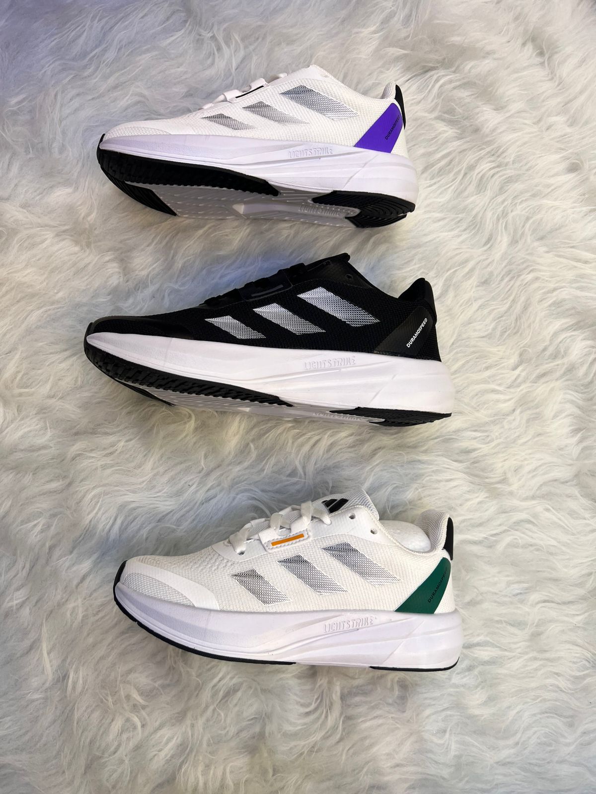 الزوج الأول (في الأعلى) أبيض مع تفاصيل باللون البنفسجي على الكعب.