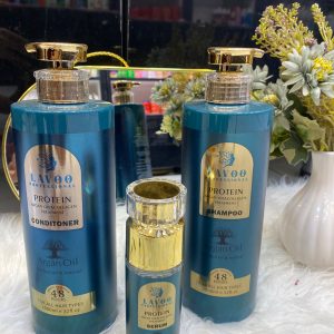 ماء (Aqua) – كبريتات لوريل الصوديوم (Sodium Laureth Sulfate) – منظف رغوي رئيسي – الكوكاميدو بروبيل بيتين (Cocamidopropyl Betaine) – منظف لطيف وموازن للرغوة – زيت الأرغان (Argania Spinosa Kernel Oil) – مغذي ومرمم للشعر – بروتينات الحرير أو بروتين القمح المتحلل (Hydrolyzed Silk/ Wheat Protein) – لتقوية الشعر وزيادة لمعانه – كلوريد الصوديوم (Sodium Chloride) – لتكثيف القوام – عطر (Parfum) – لإضفاء رائحة منعشة تدوم طويلاً – مواد حافظة مثل ميثيل أيزوثيازولينون (Methylisothiazolinone) – لحماية المنتج من التلف الميكروبي هذه المكونات تلبي احتياجات الشعر للنعومة، القوة، اللمعان، والتنظيف الفعال دون تجفيف فروة الرأس.