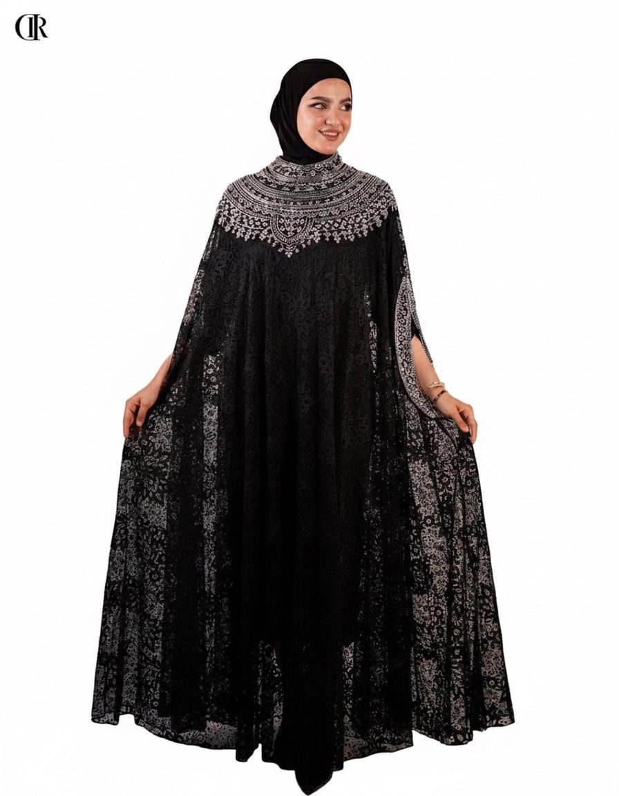 عباية مطرزة بنقوش فنية دقيقة حول الرقبة والأكمام تضيف بريقًا مميزًا يناسب المناسبات الراقية والزيارات الرسمية.