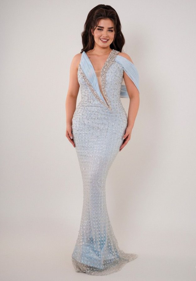 تميّزي بإطلالة فريدة تجمع بين الفخامة والرقي مع هذا الفستان الفاخر المزيّن بتطريز لامع وتفاصيل أنثوية دقيقة.