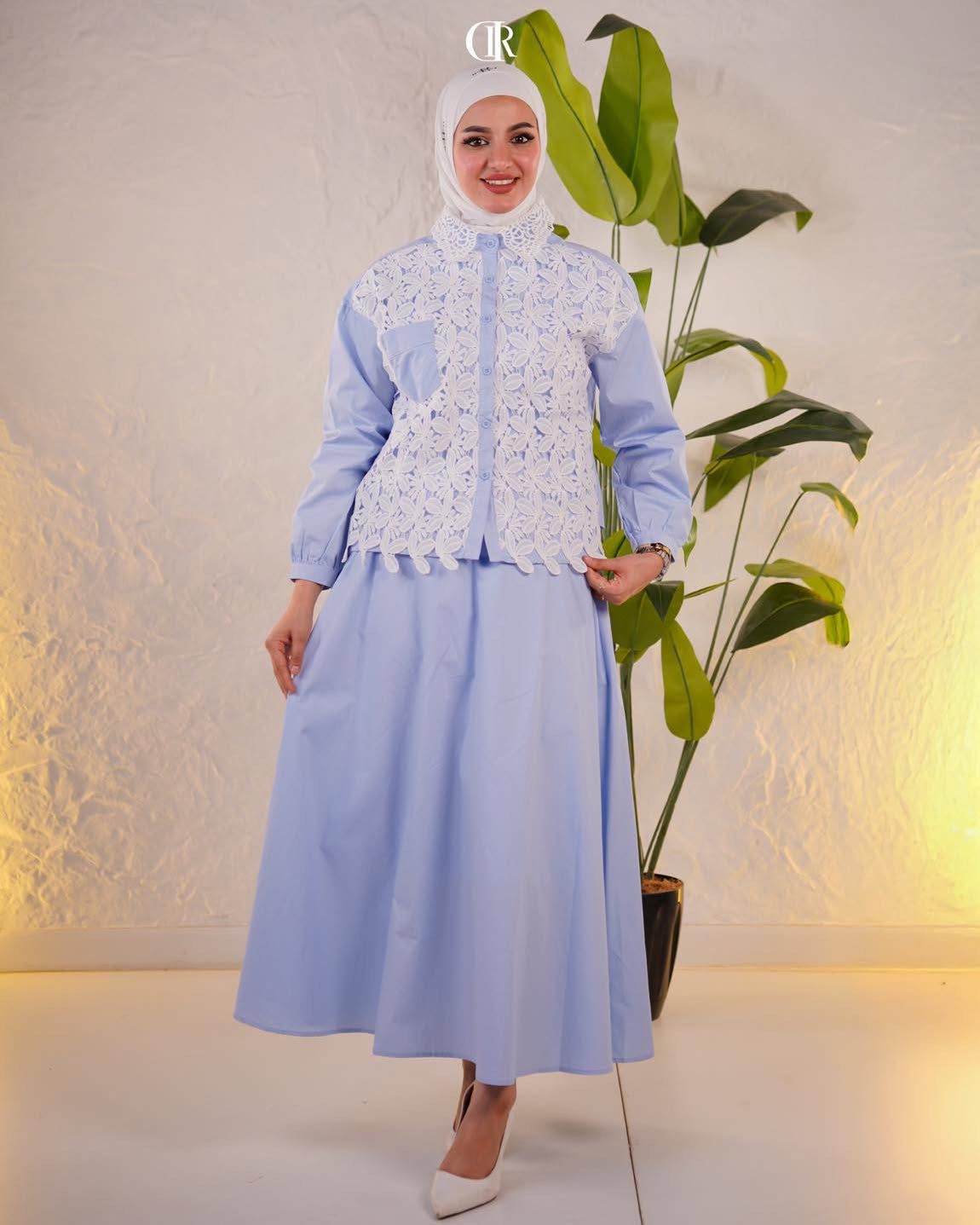 الجزء السفلي: تنورة واسعة بأقمشة مريحة توفر مظهرًا عصريًا واحتشامًا.